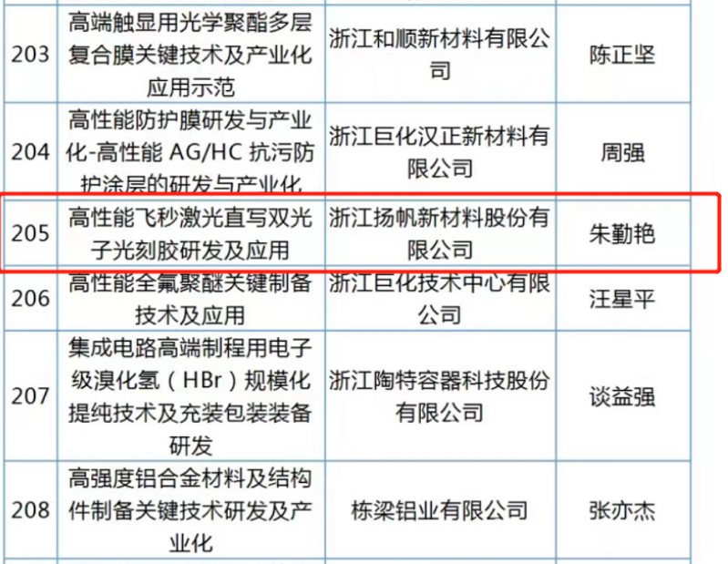 2022年11月15日,浙江省科學技術廳發(fā)布《關于2023年度第一批“尖兵”“領雁”研發(fā)攻關計劃項目立項的公示》,揚帆新材朱勤艷博士主持的項目“高性能飛秒激光直寫雙光子光刻膠研發(fā)及應用”成功入列。這是今年以來公司研發(fā)工作取得的又一可喜進展。同時,公司得到了紹興市上虞區(qū)人才發(fā)展大會的表彰并榮獲重才愛才“金梧桐獎”。
