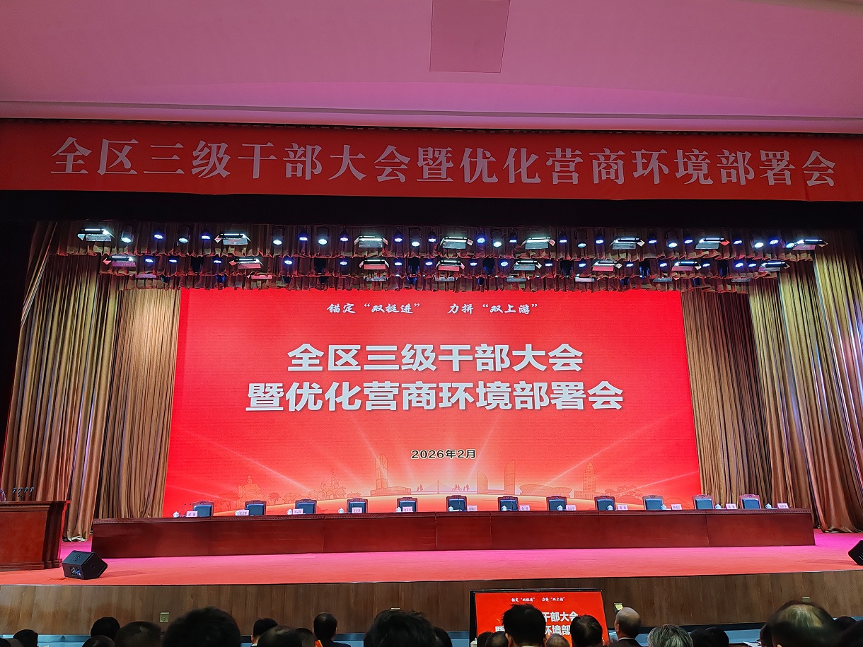 2月26日下午,全區(qū)三級(jí)干部大會(huì)暨優(yōu)化營(yíng)商環(huán)境部署會(huì)召開,會(huì)議錨定“雙挺近”、力拼“雙上游”,表彰先進(jìn)集體與個(gè)人,吹響奮進(jìn)“十五五”號(hào)角。